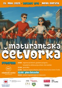 Mladinski center Nova Gorica ob podpori Mestne občine Nova Gorica, v sodelovanju s Klubom goriških študentov in Plesnim studiem Rebula, organizira Maturantsko četvorko. Dogodek bo potekal v sredo, 21. maja 2025. Na dogodku bodo maturantje, ki se šolajo v Novi Gorici, istočasno z ostalimi maturanti iz vse Slovenije, zaplesali četvorko.